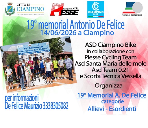 a Ciampino si comincia a lavorare per il 2026... un gradito ritorno... il Memorial De Felice !!! CATEGORIE ALLIEVI ED ESORDIENTI |