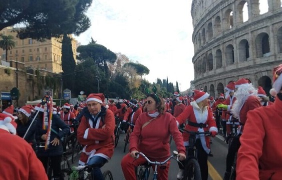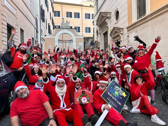 Pedalata Babbo Natale a Roma per i bambini malati di cancro21 Dicembre 2025 ROMA– Tantissimi ciclisti, grandi e piccoli, vestiti da Babbo Natale, si sono radunati davanti al Colosseo e hanno attraversato le vie della capitale per una pedalata all’insegna della solidarieta'. Si è, infatti, svolta la 14ª edizione della tradizionale biciclettata che da anni colora la città e sostiene Peter Pan ODV aiutandola a garantire supporto e accoglienza alle famiglie con bambini e adolescenti malati di cancro. L'iniziativa è organizzata con il patrocinio di Roma Capitale – Assessorato ai Grandi Eventi, Sport, Turismo e Moda. Partiti alle 9.30 dal Colosseo, i Babbo Natale in bicicletta hanno pedalato per circa quattro chilometri attraverso le strade di Roma. All’arrivo, a Trastevere, davanti alla Grande Casa di Peter Pan, dove sono ospiti le famiglie accolte dall’organizzazione di volontariato, si è svolto un momento di festa condivisa: un abbraccio simbolico tra i ciclisti, gli ospiti e i volontari di Peter Pan. Gli organizzatori hanno consegnato le donazioni raccolte durante la mattinata, che aiuteranno Peter Pan a rendere più serene le feste dei piccoli malati e delle loro famiglie. «Un grazie di cuore agli organizzatori e a tutti i partecipanti di questa straordinaria pedalata solidale – Dichiara Roberto Mainiero, presidente di Peter Pan ODV –