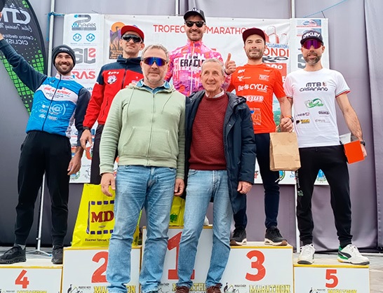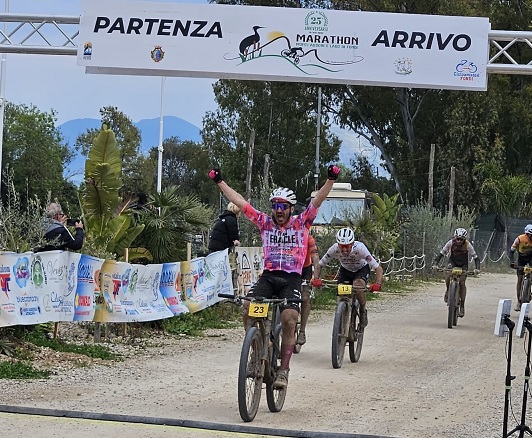Pioggia di vincitori alla Marathon dei Monti Ausoni 22/03/2026 Bellissima edizione della Marathon dei Monti Ausoni-Lago di Fondi, tappa dei circuiti New Marathon Lazio, Race Cup Mtb Centro Italia e Trofeo dei Parchi Naturali che nella città pontina ha portato centinaia di biker a confrontarsi su un percorso velocissimo, primo di dislivello ma proprio per questo alla fine delicato da interpretare. Una gara di 70 km che ha avuto un epilogo inconsueto per una prova di Mtb con uno sprint di ben 9 corridori a giocarsi la vittoria e alla fine racchiusi nello spazio di 5”. A vincere è stato Luigi Maria Di Cosola (Team Eracle) nel tempo di 2h03’47” beffando Francesco Clemente (Cicl.Oliveto Citra) e Adriano Luciano (Becycle Club Lucky Team), più discosti Mirko Zanni (Momo Bike) e il locale Vincenzo Cammisola (Cicli Rebike Fondi). La gara femminile incorona Greta Recchia (Team Granfondo Almasbikeexp.) in 2h12’34” davanti a Cristiana Maria Rescigno (Petrucci Gauss) a 10’17” e a Mara Parisi (Bike Sport Team) a 16’11”. Nel percorso medio di 59 km fuga a tre con prima posizione per Concetto Gianni (Team Nuova Avir) in 1h55’12” che allo sprint ha battuto Ivan Diomede (1D+ Un Dente in Più), terzo a 4” Alessio Sgrò (Swattati Team). Fra le donne prima Anna Maria Rossi (Scuola Indoor Cycling Fitnessmanhia) in 2h14’32”, alle sue spalle Luana Minerva (Mtb Casarano) a 11’47” e Antonella Capone (Pol.BPP) a 23’07”.