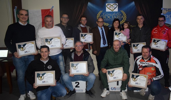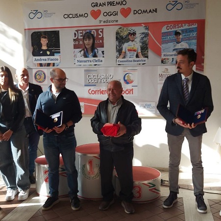 .Altra piacevole sorpresa , al rientro dalle gare alla prima partecipazione del 2019 sale sul primo gradino dei super/g quella "vecchia volpe " di Antonio Branchi (IFI- Giant store Roma) poi Marco Di Salvo con la nuova casacca del Roma Team , Marco Bondani ( fresco vincitore di categoria alla gran fondo del Parco) , Benedetto Venditelli , Bruno Oliveti. Il presidente Stefano Bianchini con il direttore di gara Emanuele Chiominto e il responsabile CSAIn Roma Claudio Trovarelli , hanno effettuato le ricche premiazioni ( premiati tutti i presenti) negli accoglienti locali del noto ritrovo dei ciclisti romani , il ristorante "Il Canneto" , sono state omaggiate con una targa le figlie di Giancarlo Pavoni