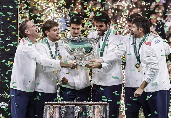 NON SOLO CICLISMO : Italia in Coppa Davis: la storia e i risultati L'Italia vince la Coppa Davis per il terzo anno consecutivo, centrando un risultato storico. Decisiva la vittoria contro la Spagna per 2-0 grazie ai successi di Matteo Berrettini e di Flavio Cobolli. Ecco alcuni dei momenti più importanti dell'Italia nella competizione Bologna, 23 novembre 2025 – Non si può scrivere una favola più bella di così. Una lotta pura “col sangue alla bocca” come ha detto in questi giorni Flavio Cobolli, regala all’Italia la quarta Coppa Davis della storia, la terza consecutiva. Vittoria in controllo per Matteo Berrettini, che s’impone su Carreno Busta per 6-3, 6-4. Poi uno strepitoso Flavio Cobolli risale ancora una volta dagli abissi, ribaltando il match contro Jaume Munar. Tre ore di pura battaglia con quello che per anni è stato etichettato come l’erede di Nadal, e vuole scrollarsi lo scomodo peso di dosso. “Si ripete da tre giorni il giorno più bello della mia vita - dice Cobolli, quasi senza parole –. Abbiamo provato a fare come i campioni del mondo 2006 (quelli del calcio), giocando tutto il il giorno alla PlayStation”. Sinner: "Campioni del mondo. Complimenti per questa vittoria incredibile" "Campioni del mondo. Complimenti per questa vittoria incredibile", è il post di Jannik Sinner con cui si compklimenta con i compagni per la conquista della Coppa Davis da parte dell'Italia. Il tennista di Sesto Pusteria su Instagram rilancia una 'combo' con le immagini dei compagni di squadra che hanno conquistato l'insalatiera e le date delle vittorie azzurre: 1976, 2023, 2024, 2025. |