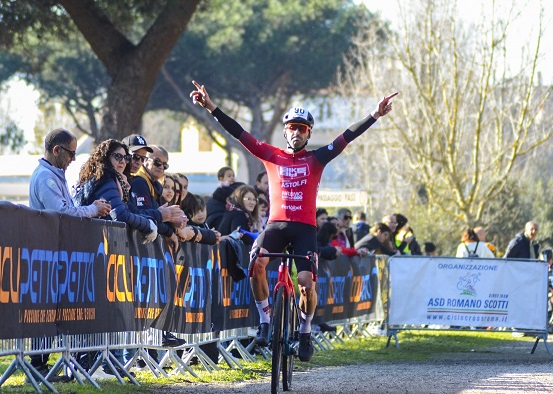 Maximo Bikelab-Team Astolfi la scorpacciata di panettoni non influisce sui risultati Il giovane Fabrizio Trovarelli chiude il 2024 con una altisonante vittoria a Castel di Leva (Roma). Il tempo ha voluto essere clemente e ha regalato agli atleti una bella giornata di sole . Sul nuovo tracciato del My Fly Zone di Roma Fabrizio Trovarelli ( Maximo Bikelab-Team Astolfi ) riusciva subito a trovare il feeling con i dossi del percorso e anticipava in 01:00:36 Diego Di Stasio ( ASD GS Cignone )01:01:18 e Fernando Herrera Higarreta (ASD Cicli Fatato ) 01:01:18. Grazie a questa vittoria riusciva a conquistare anche la maglia gialla del trittico del Roma Master Cross Per la fascia degli atleti piu’ maturi ottima la prova di Americo Mazzeo (Race Mountain - GM Sport Folcarelli) 43:55:44 , Ponzo Domenico (Piesse Cycling Team ASD) in 44:01:69 , Tulin Daniele ( Race Mountain - GM Sport Folcarelli )44:06:49 , Coscia Stefano ( ASD Lazzaretti Racing Team )45:02:93 , Andrea Bottoni ( ASD Team Bike Palombara Logic Bike) 45:29:43 . Le vittorie di categoria sono andate a : - ELIT MENICACCI MICHAEL (Race Mountain - GM Sport Folcarelli) - M1 DIOMEDI ALESSANDRO (Vivo - Mg.K Vis - Dal Colle) - M2 TROVARELLI FABRIZIO (MAXIMO BIKELAB TEAM ASTOLFI) - M3 DI STASIO DIEGO (ASD GS CIGNONE) - M4 MAZZEO AMERICO (Race Mountain - GM Sport Folcarelli) - M5 TULIN DANIELE ( RACE MOUNTAIN GM SPORT FOLCARELLI ) - M6 COSCIA STEFANO ( LAZZARETTI RACING) - M7 QUATTRINI MARIO ( FIORMONTI TEAM ) - M8 CIANCARINI ANGELO ( MTB SANTA MARINELLA MONTANINI )